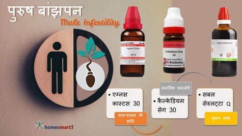 होम्योपैथिक दवाएं बांझपन के मूल कारणों जैसे शुक्राणु की खराब मात्रा और गतिशीलता, हाइपोएक्टिव यौन इच्छा (कम कामेच्छा/loss of libido) और अन्य अंतर्निहित स्थितियों जैसे दर्दनाक संभोग आदि से निपटती हैं। एक डॉक्टर ने पुरुष बांझपन के इलाज के लिए कुछ महत्वपूर्ण होम्योपैथी दवाओं की पहचान की है