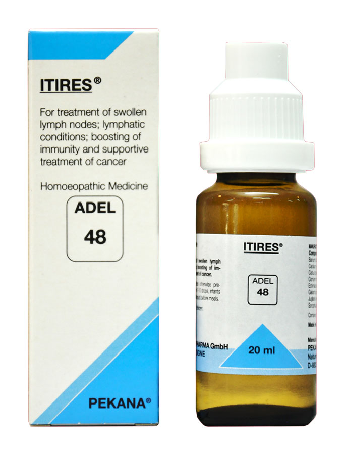 ADEL 48 (ITIRES) नई व पुरानी बीमारियों दौरान विषाक्त पदार्थों के उत्सर्जन को गति देना, प्रतिरक्षा प्रणाली की प्रतिक्रिया को तीव्र कर, पूरी लसिका प्रणाली को विष मुक्त करती है। यह हर प्रकार के कैंसर उपचार में लाभकारी है, क्योंकि लसिका प्रणाली की रूकावटें अंततः संयोजी ऊतकों को विषाक्त करती हैं।